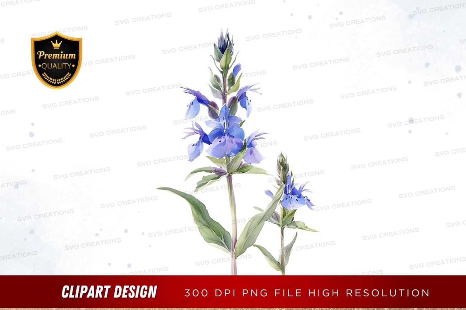 Illustration Watercolor Nature Flower Leaves Blue Petals Botany
