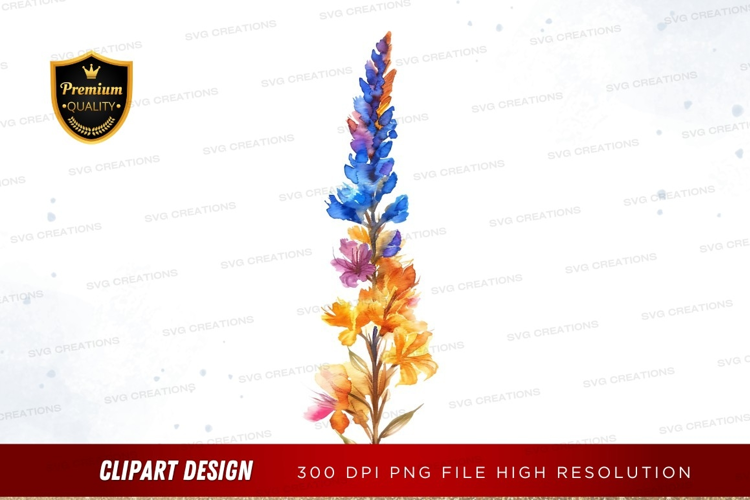 Watercolor Flower Clipart Purple Orange Blue Yellow Png Stem