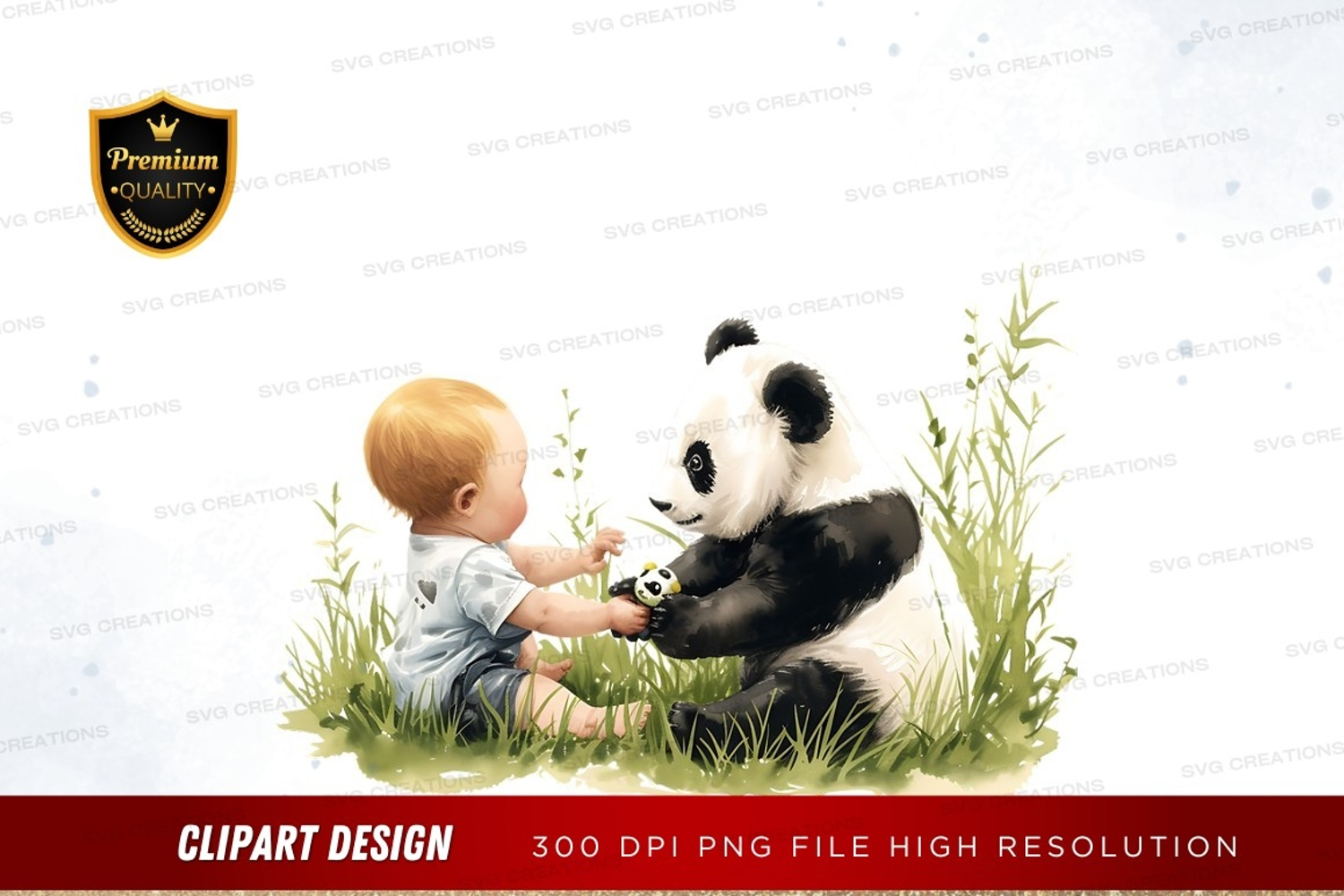 Children Illustration Animals Baby Nature Clipart Panda Bamboo Grass Friendship