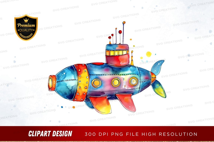 Colorful submarine clipart png example image 1