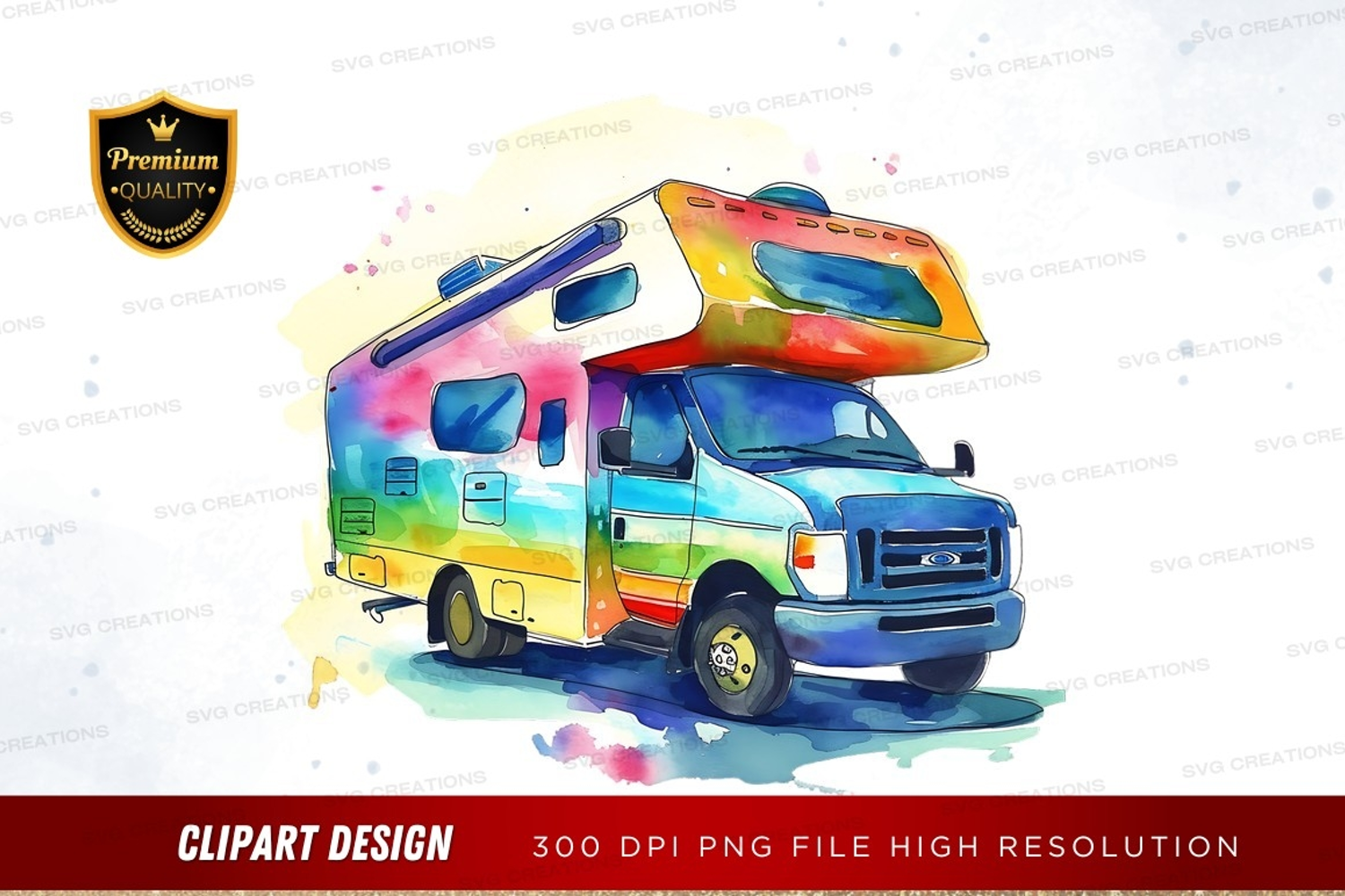Illustration Colorful Travel Clipart Png Camping Camper Rv Rainbow Recreational Vehicle