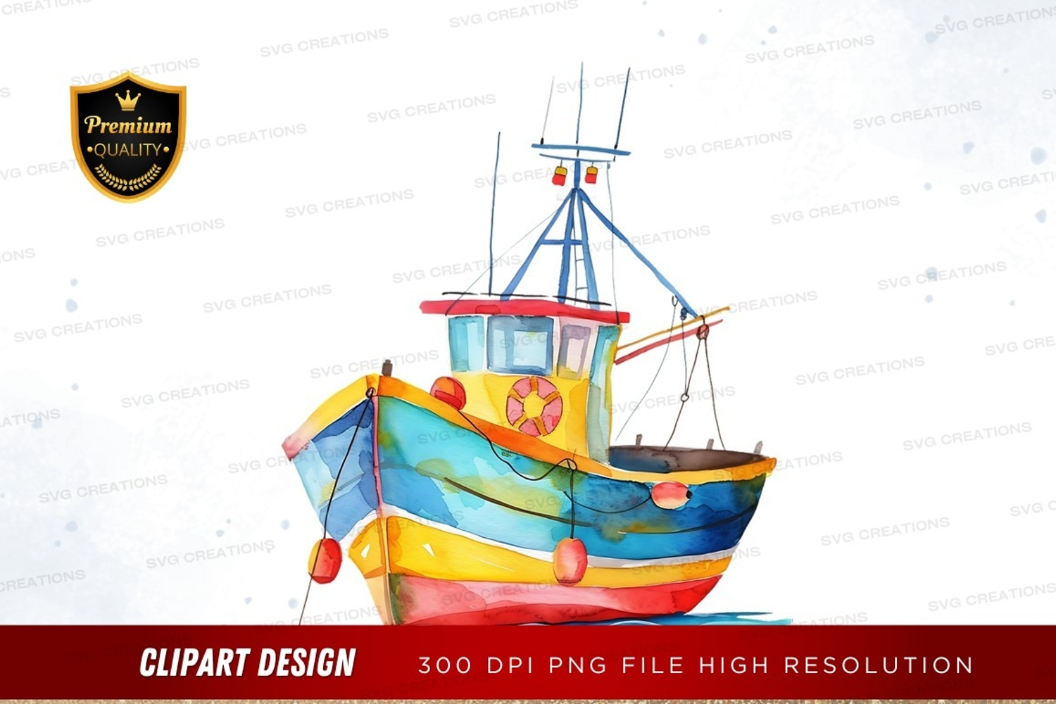 Watercolor Colorful Nautical Star Boat Herbs Petals Fishing Fishing Boat Buoys