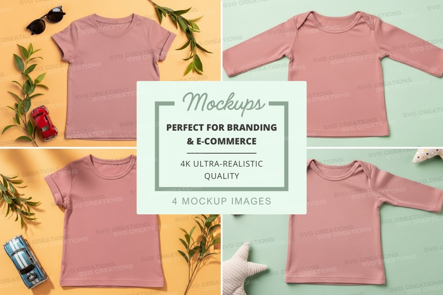 Pink Mockup Background Plant Accessories Sunglasses Baby Clothing Toy Car