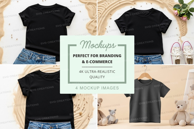 Similar Design Products to Mockup of black t-shirt with accessories