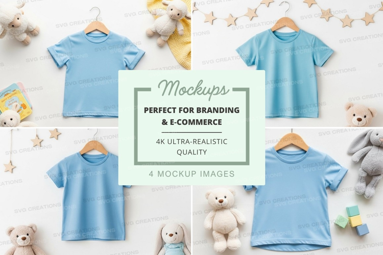 Similar Design Products to Mockup of blue t-shirts surrounded by stuffed animals