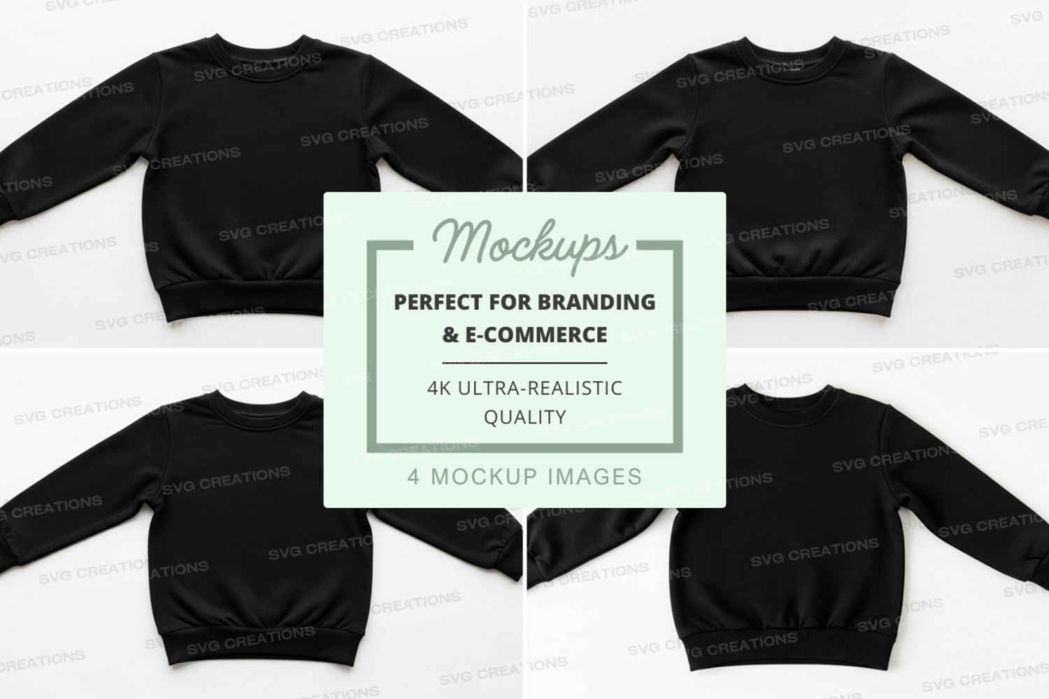 Black Clothing Mockup Front View Side View Back View Flat Lay Sweatshirt