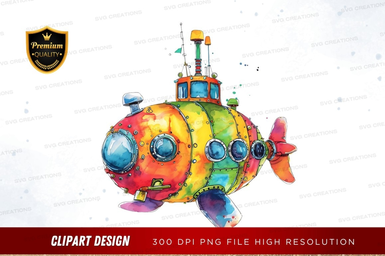 Colorful submarine clipart png example image 1