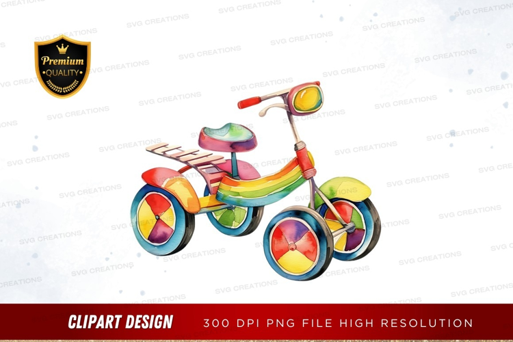 Colorful children's tricycle clipart png example image 1