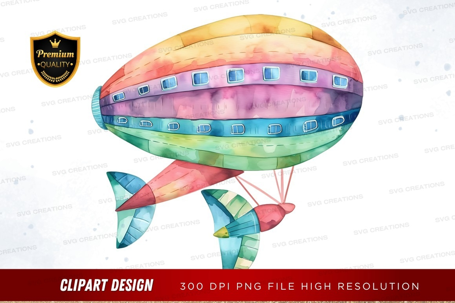 Cartoon Whimsical Windows Gradient Balloon Airship Fins Multi-colored Decks Flying Vessel