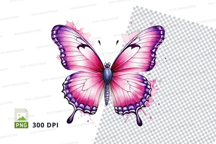 Watercolor Pink Nature Clipart Purple Butterfly Insect Stem Petals Botany