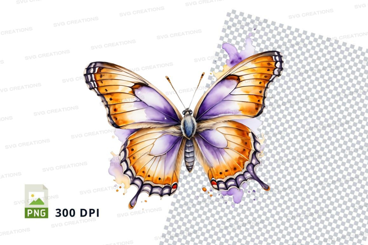 Illustration Watercolor Nature Clipart Purple Orange Blue Butterfly Insect Stem