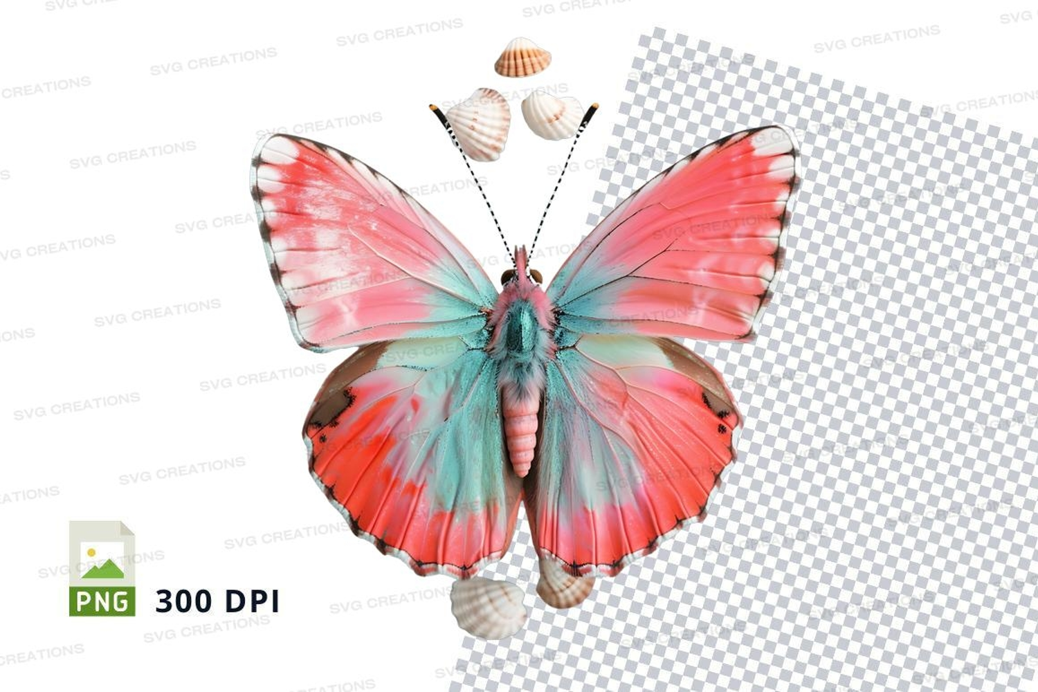 Colorful butterfly with seashells clipart png example image 1