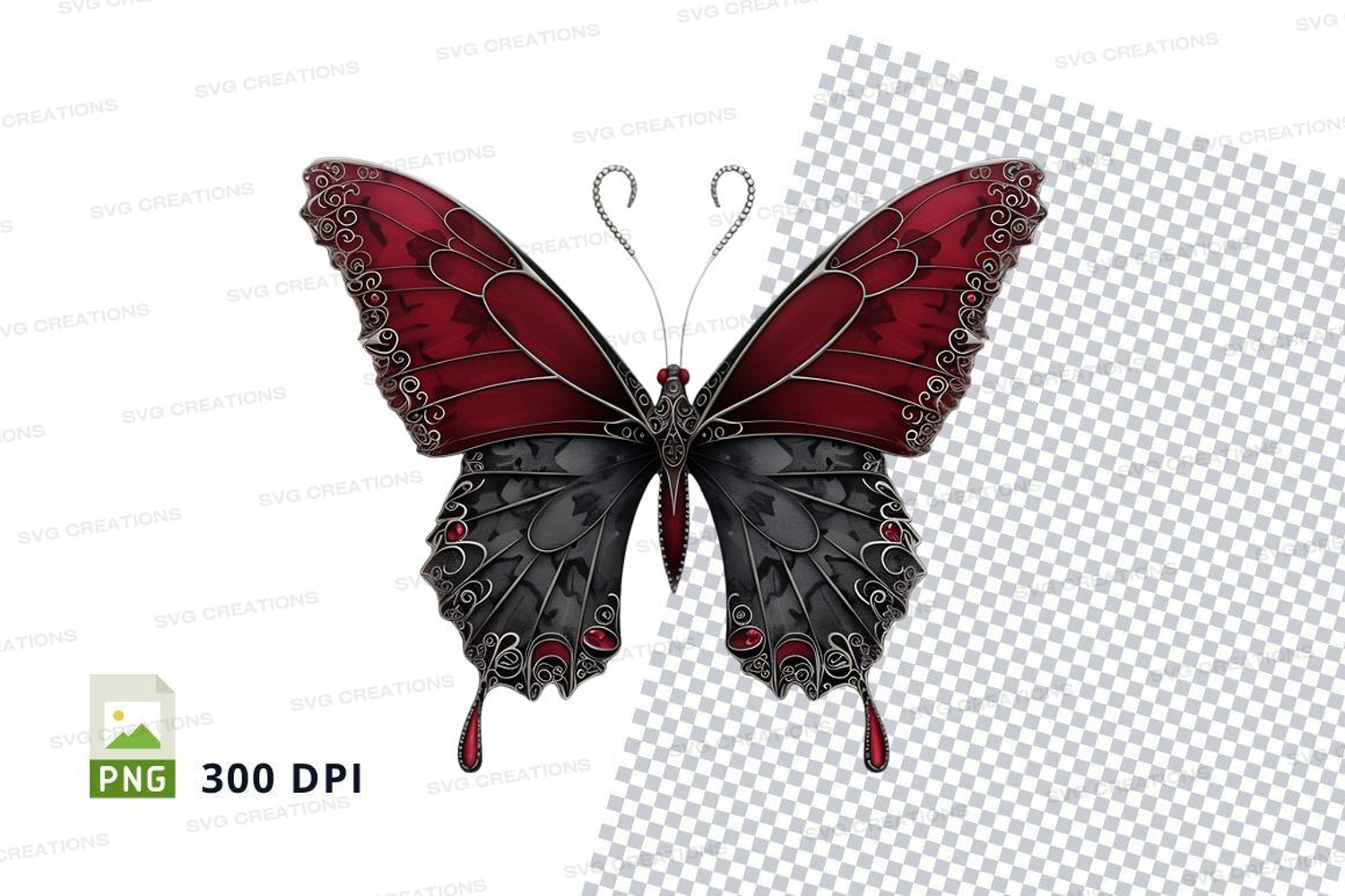 Gothic Black Dark Pattern Butterfly Png Red Intricate Clipping Path