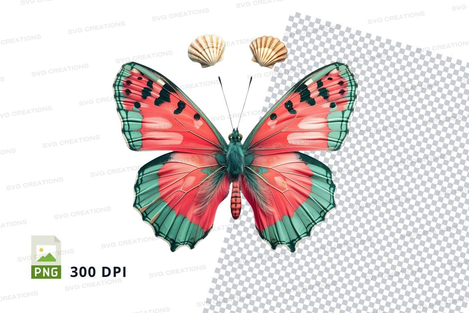 Similar Design Products to Vibrant butterfly with seashells clipart png