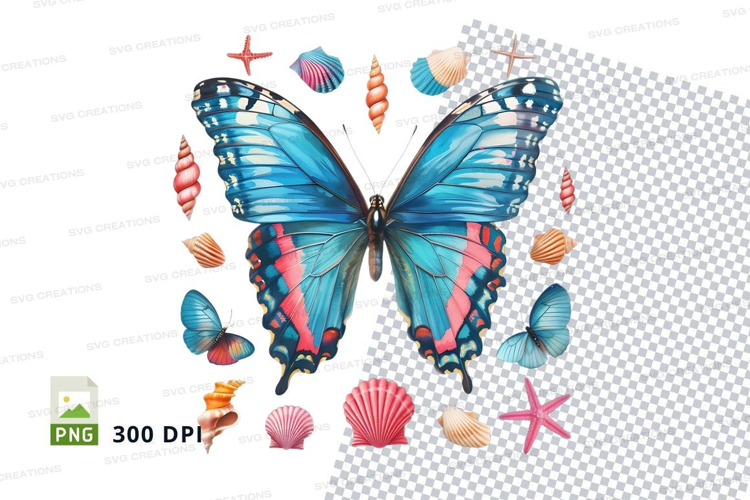 Colorful butterfly and seashell clipart png