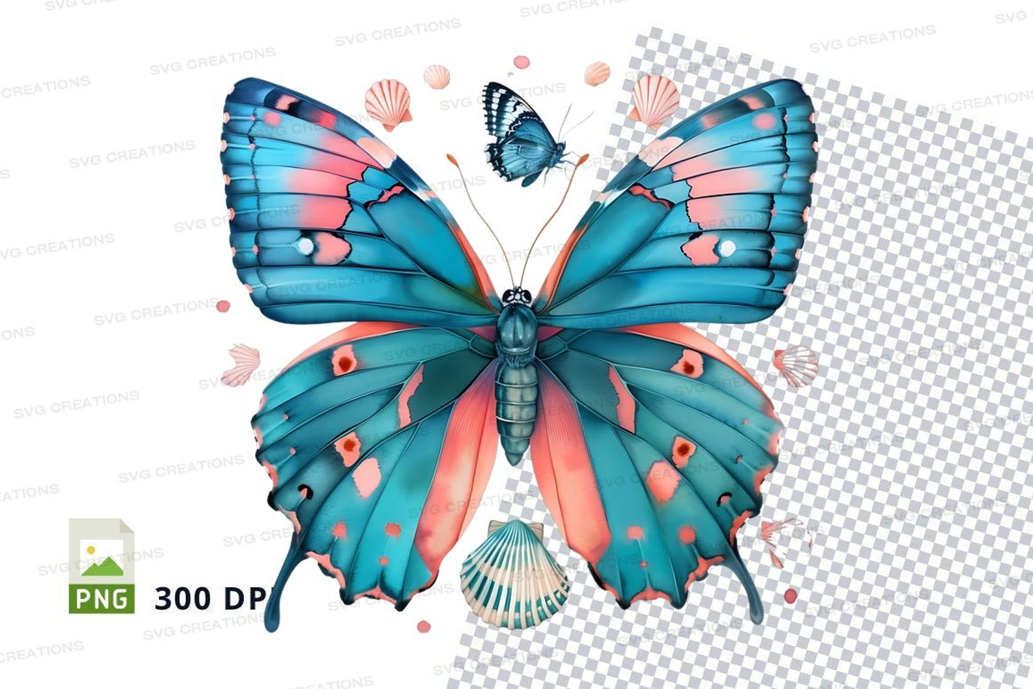 Serene butterfly with seashells