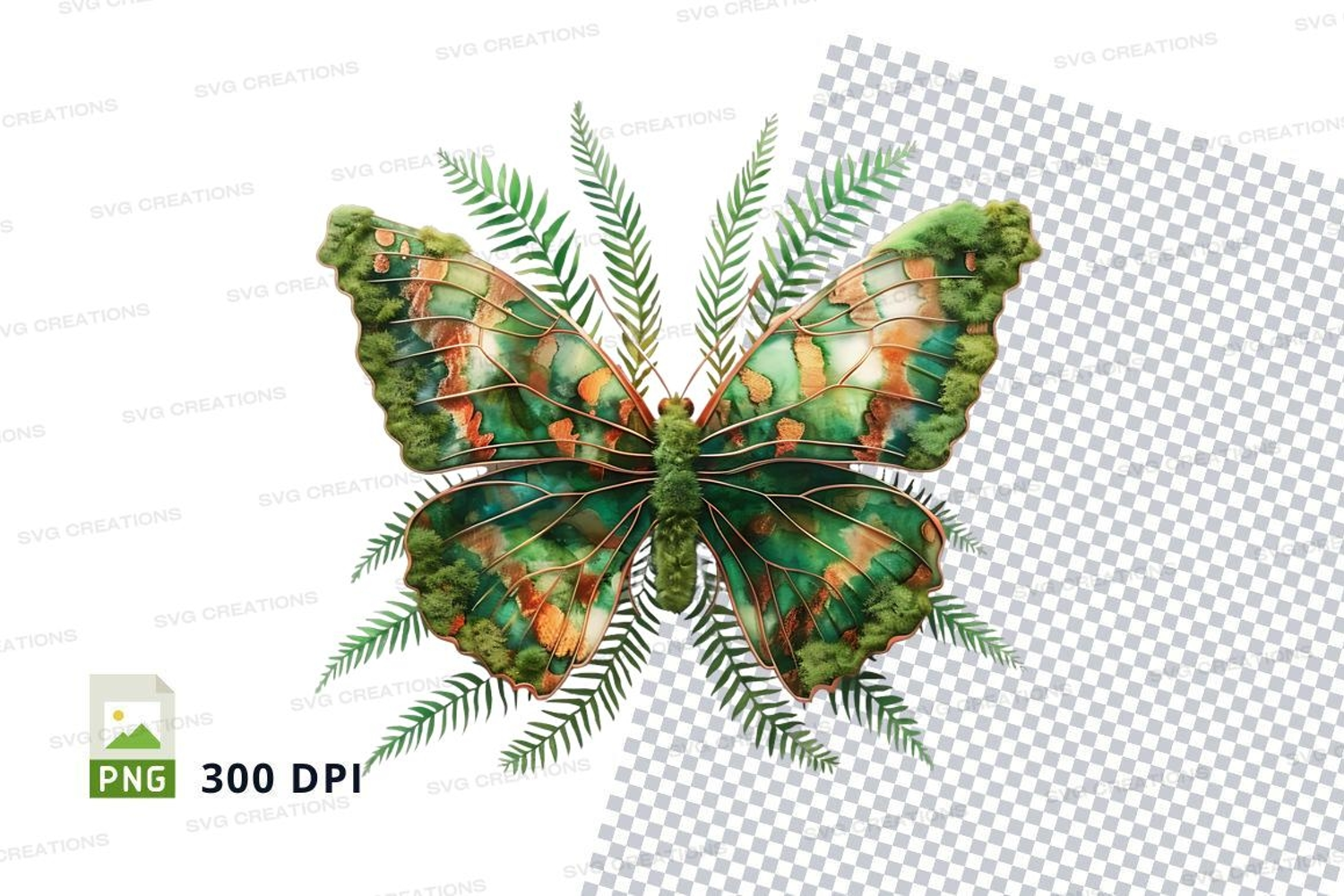 Similar Design Products to Green butterfly with ferns clipart png