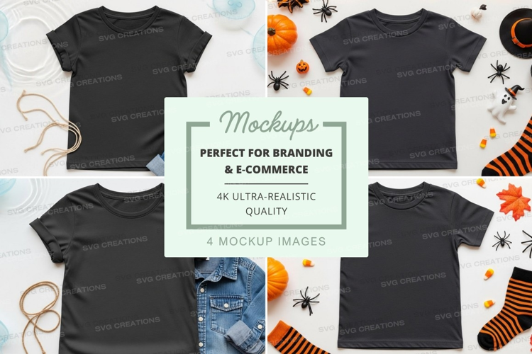 Kids Halloween T-shirts Mockup Accessories Seasonal Pumpkins Socks Spiders