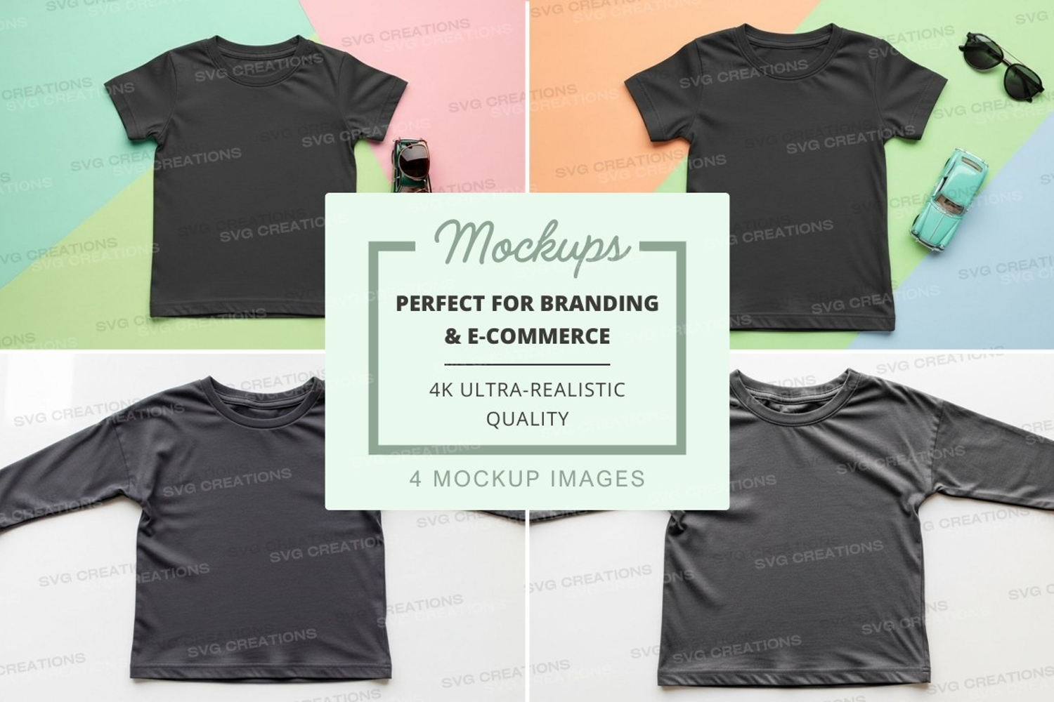 T-shirt Mockup Colorful Background Short-sleeved Black T-shirt Plain Background Long-sleeved