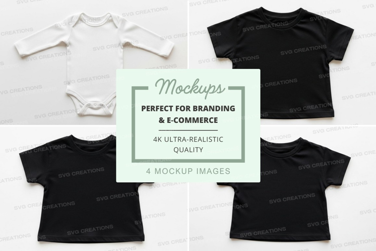 Black T-shirt Mockup White Baby Clothes Babywear