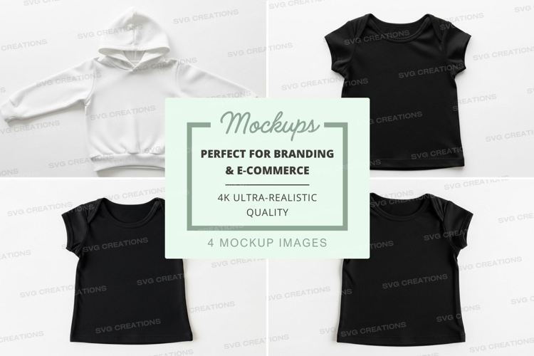 Black T-shirt Mockup White Hoodie Baby Clothing Babywear Clothing Items