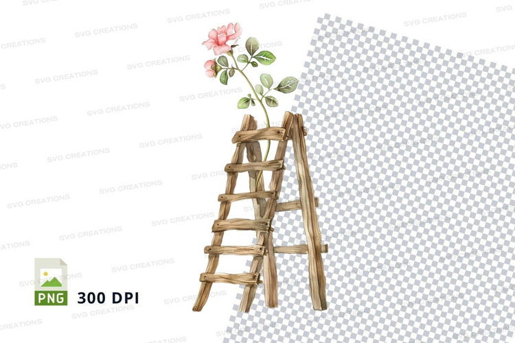 Rustic ladder with blooming rose clipart png example image 1