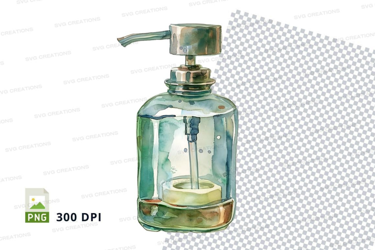Illustration Watercolor Metal Transparent Pump Hand Sanitizer Dispenser