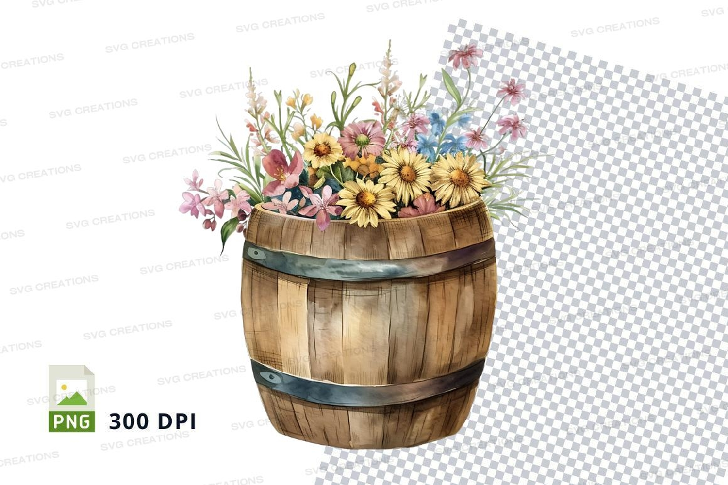 Similar Design Products to Barrel of flowers clipart png