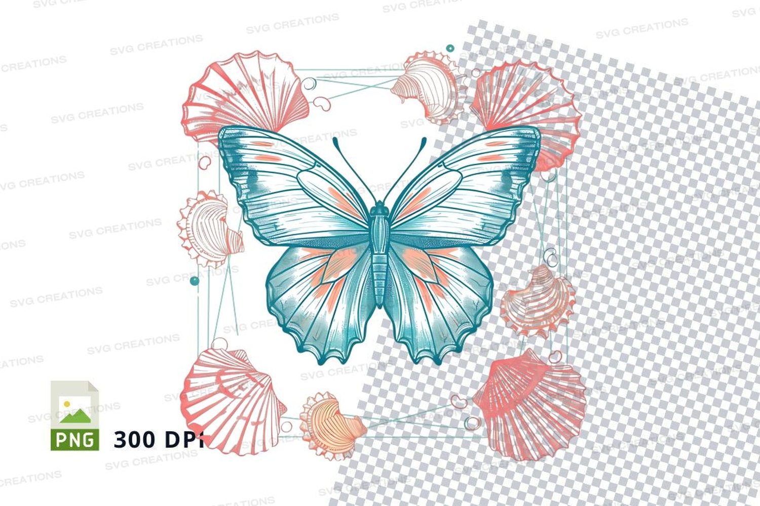 Decorative Illustration Art Nature Clipart Butterfly Teal Coral Shells Seashells