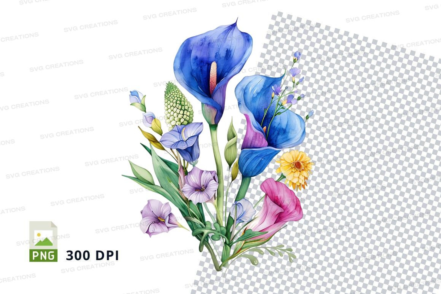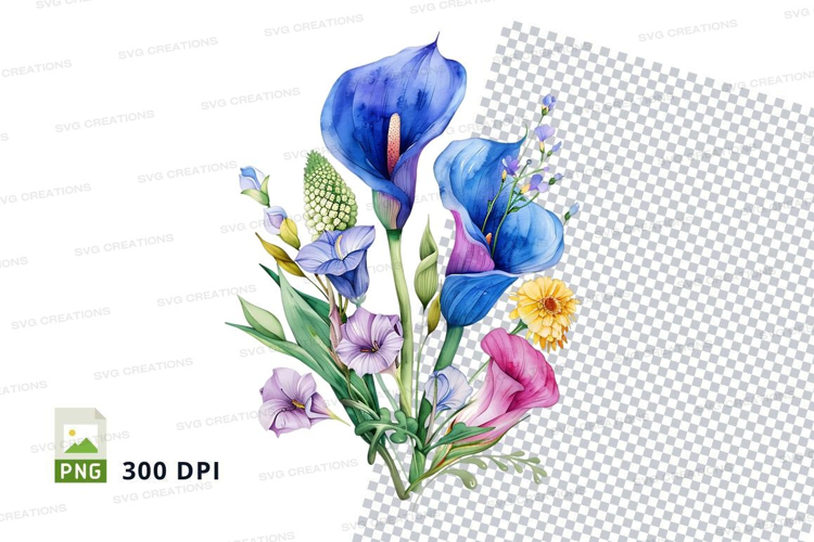 Illustration Art Nature Green Flowers Clipart Purple Yellow Bouquet Callalilies
