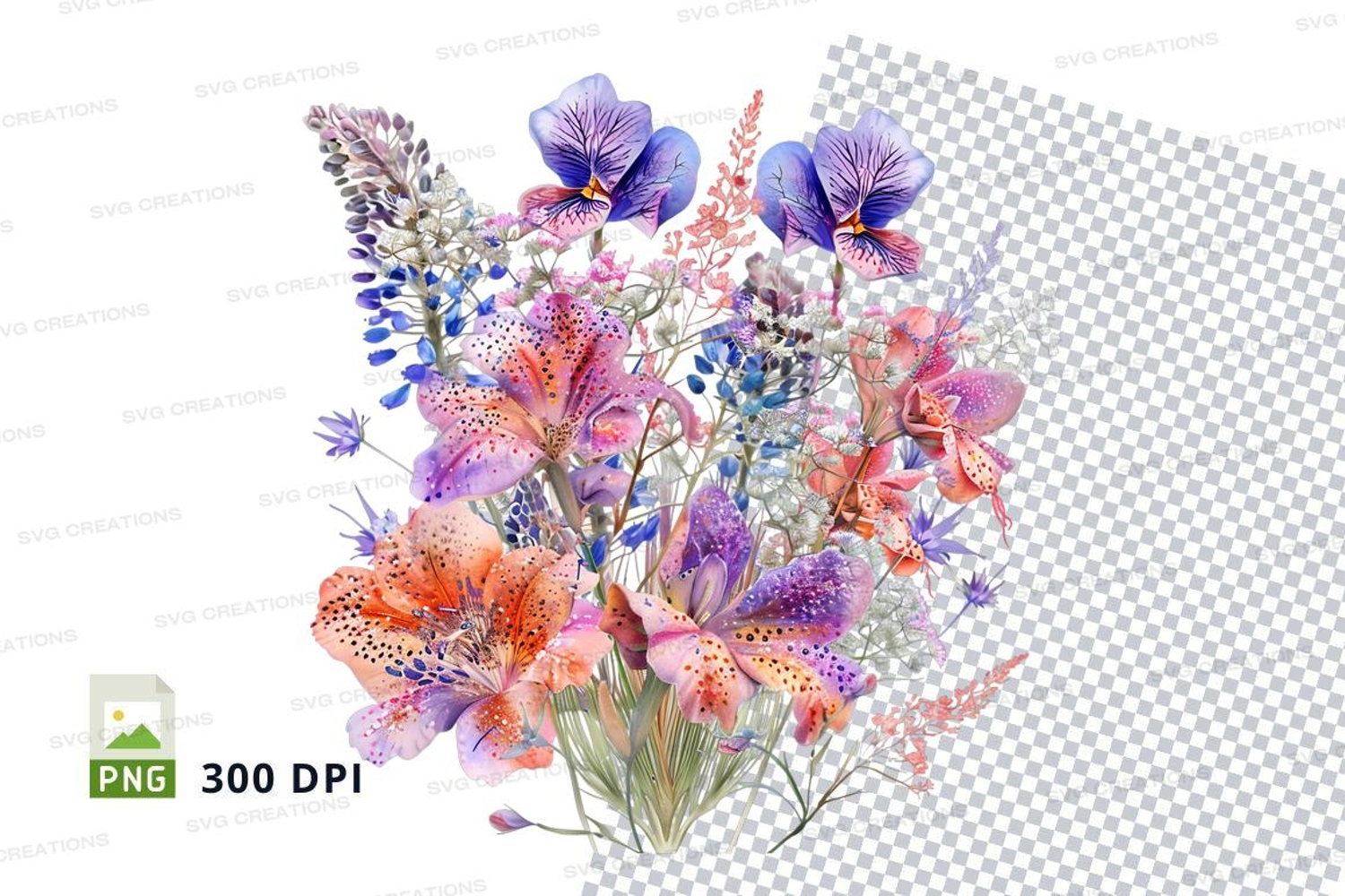 Illustration Nature Colorful Flowers Clipart Bouquet Png