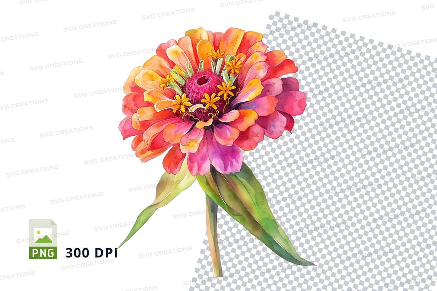 Illustration Watercolor Pink Nature Green Flower Orange Yellow Botany Zinnia