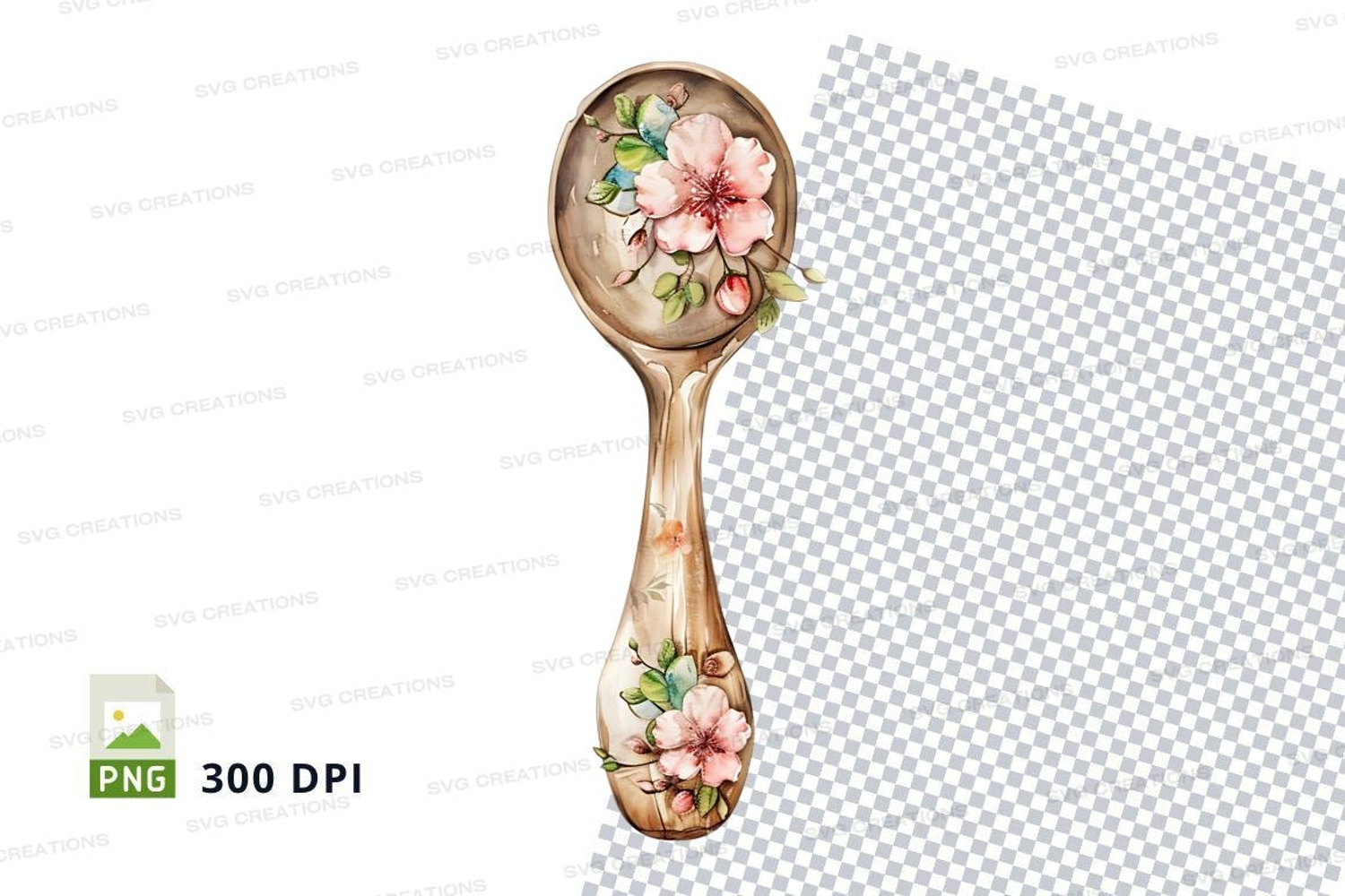 Decorative Design Pink Green Floral Flower Wooden White Transparent Spoon