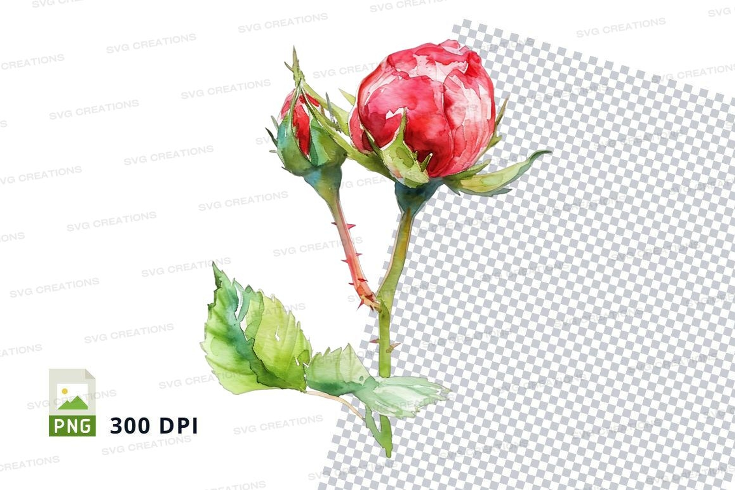 Illustration Watercolor Flower Leaves Rose Bud Stem Thorns