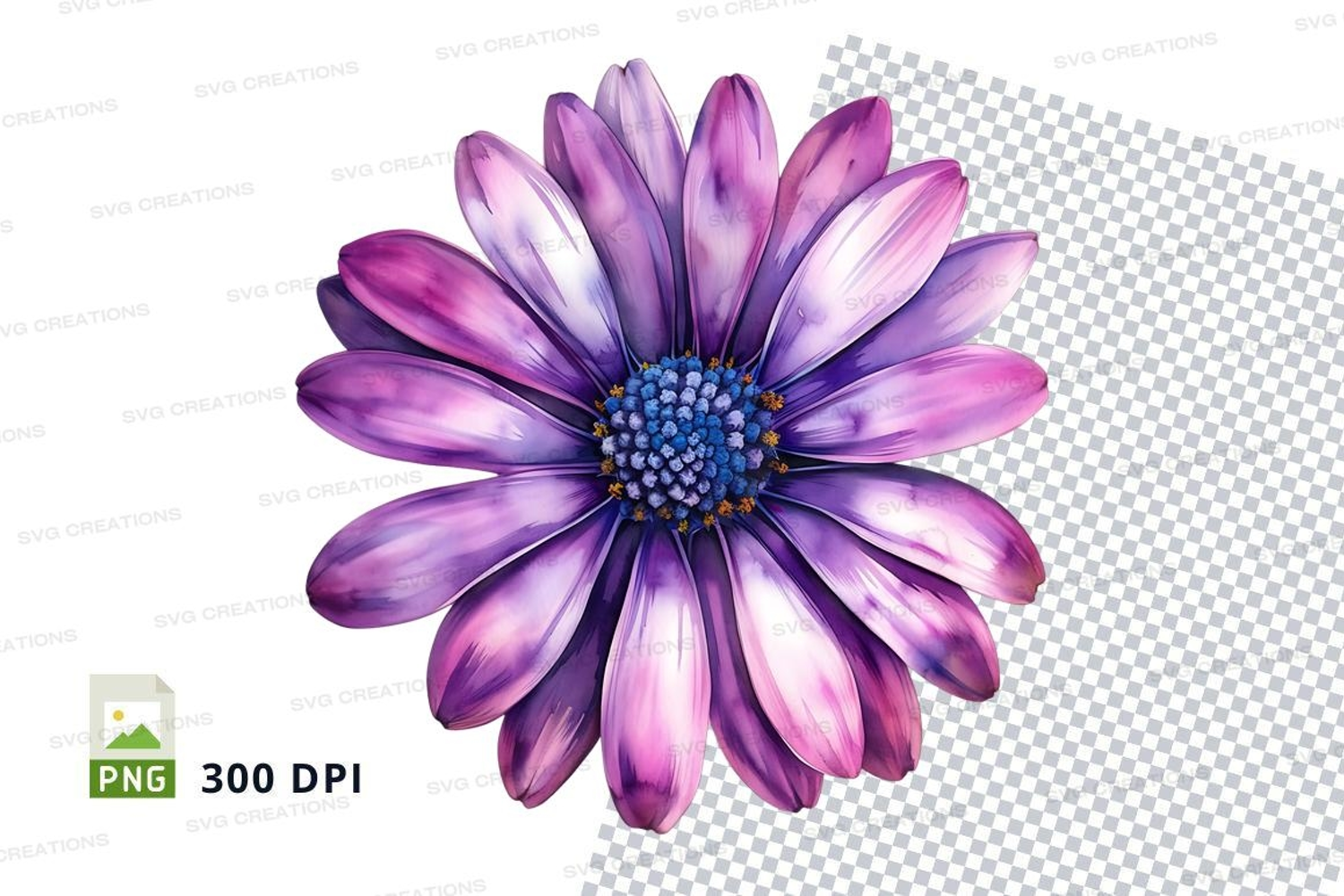 Illustration Watercolor Nature Flower Clipart Purple Blue Transparent Background Daisy Botany
