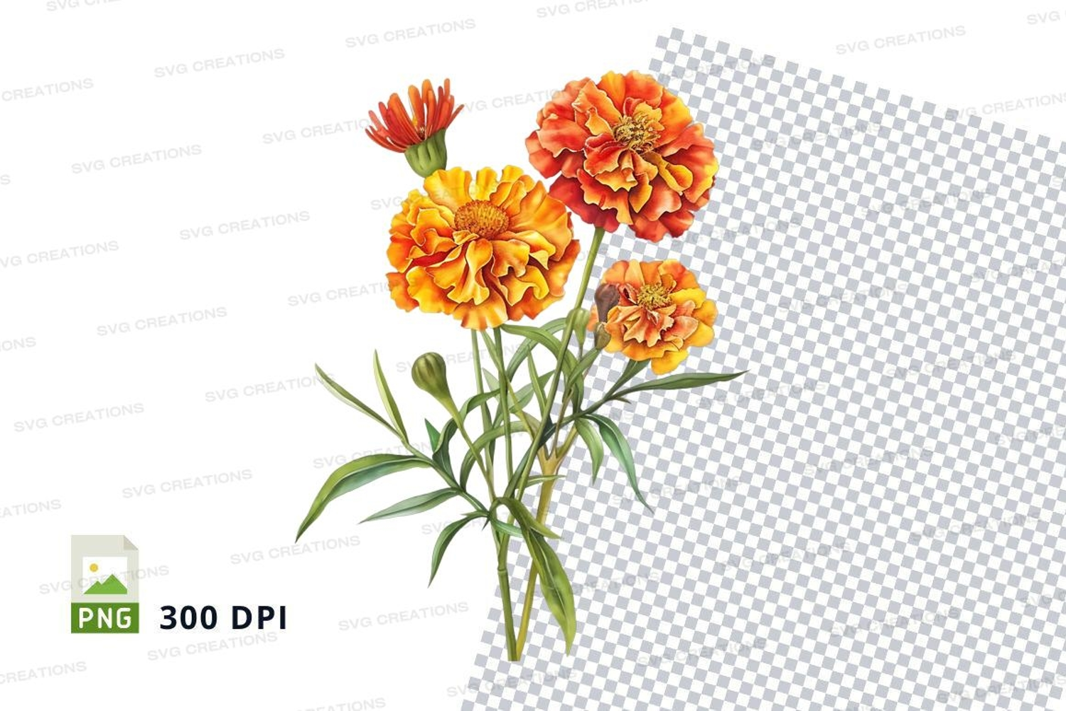 Illustration Nature Flowers Botanical Orange Yellow Bouquet Transparent Clipping Marigold