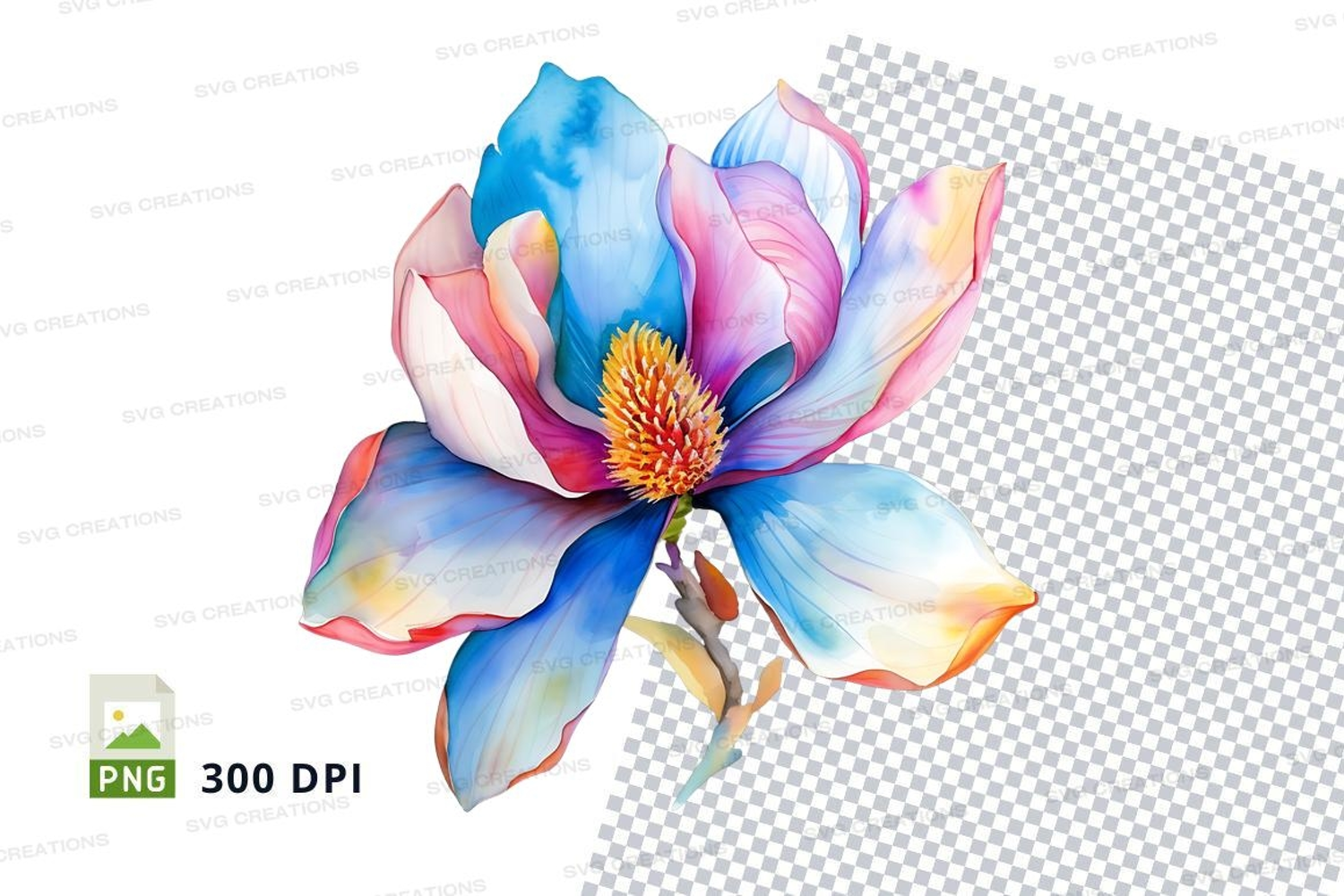 Watercolor Pink Flower Clipart Bloom Blue Yellow Petals Magnolia Center
