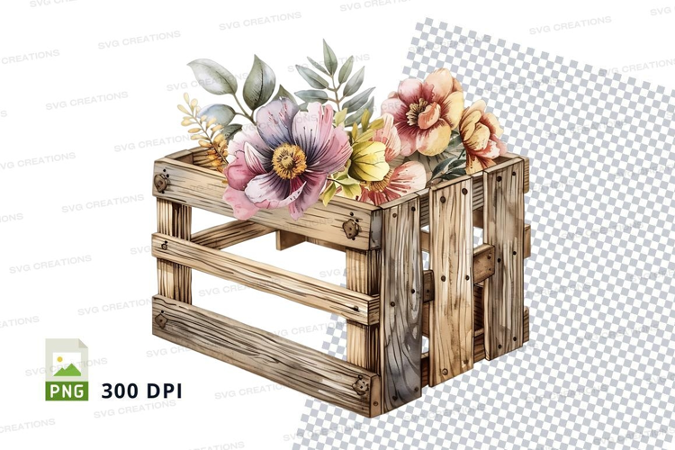Similar Design Products to Wooden crate with floral arrangement clipart png