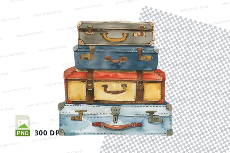 Vintage Illustration Watercolor Travel Leaves Transparent Background Decor Stack Crate Suitcase