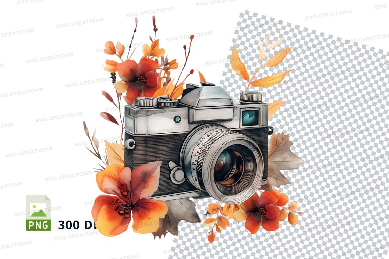 Vintage Illustration Watercolor Flowers Autumn Leaves Png Camera
