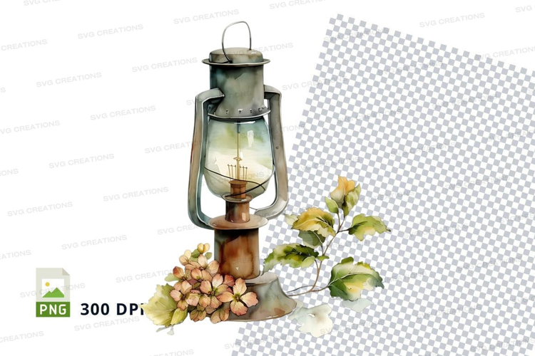 Vintage lantern with leaves clipart png example image 1