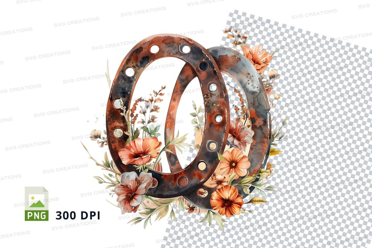 Similar Design Products to Rustic horseshoe with floral design clipart png