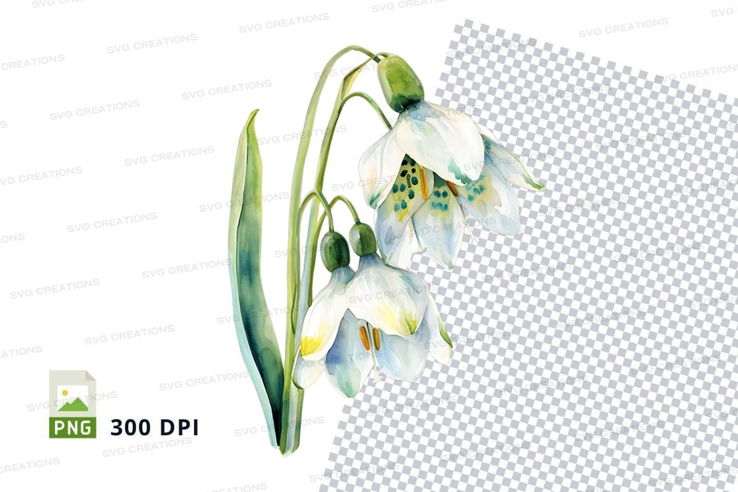 Illustration Watercolor Spring Nature Green Flower Blue Botany Snowdrop Longitude