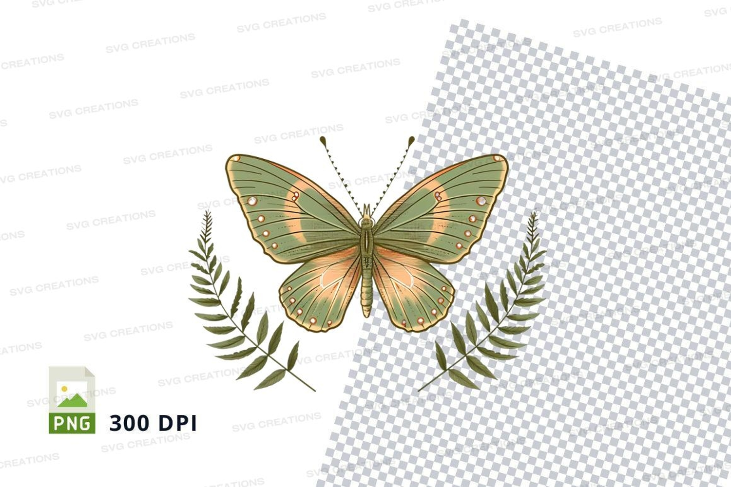 Elegant butterfly with leaves clipart png