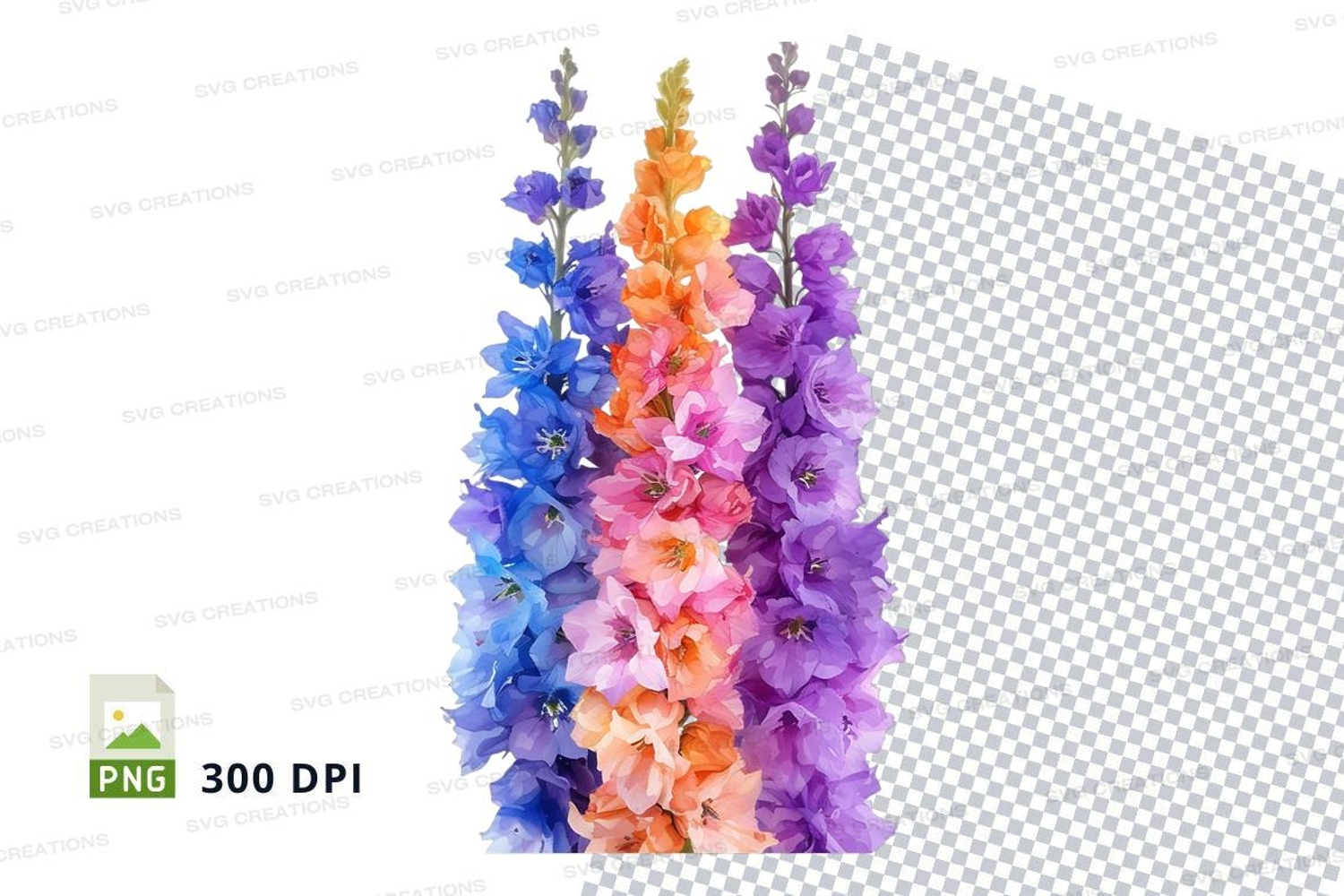 Illustration Nature Colorful Flowers Clipart Purple Orange Blue Botany Delphinium