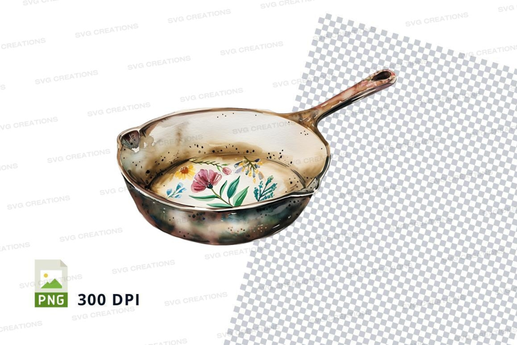 Decorative Rustic Clipart Png Cooking Kitchen Floral Design Wooden Handle Cast Iron Skillet