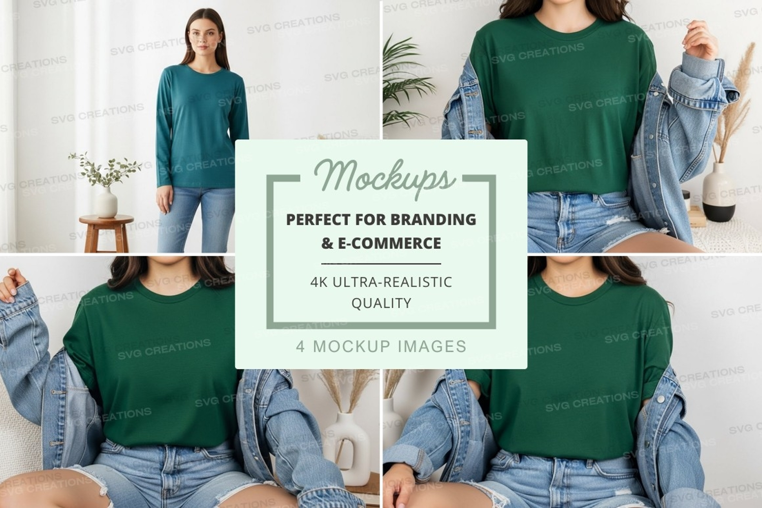 Similar Design Products to Mockup: green long-sleeve t-shirt with denim