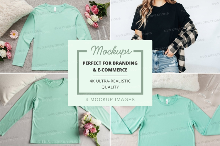 Mockup: turquoise long-sleeve t-shirts and casual outfit example image 1