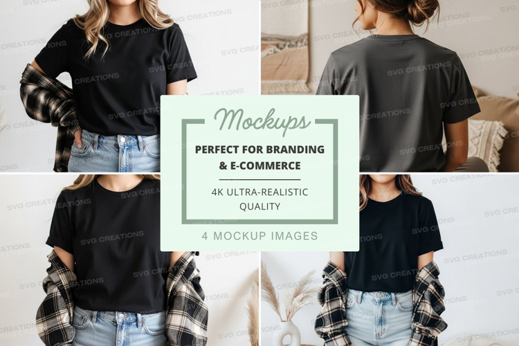 Fashion Black T-shirt Mockup Jeans Plaid Casual Wear