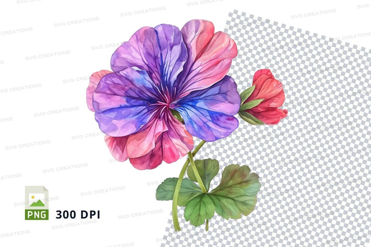 Illustration Pink Nature Flowers Purple Red Night Sky Geranium Clipping Path Yellow Center